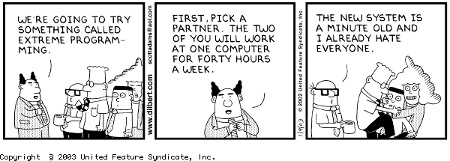 Dilbert drabbas också av Scrum, Agile och XP till och från…