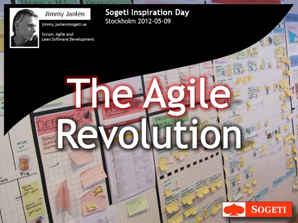 ”Det har snart gått 20 år sedan de första agila metoderna experimenterades fram och började sprida sig. Idag pågår en revolution mitt framför våra ögon. Jimmy Janlén, Scrum Master och Agile Coach på Sogeti, delar med sig av sin betraktelser och tankar av vad som driver förändringen, vilka dom största utmaningarna är runtom i företag och organisationer samt ställer frågan – finns det rosa agila elefanter, och vilka är dom i så fall?”