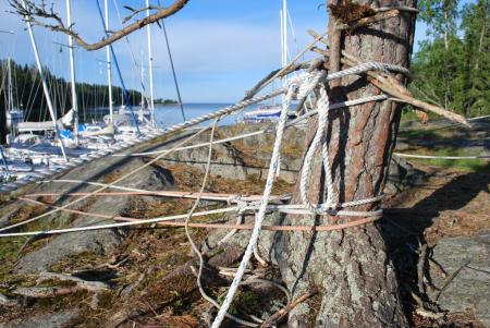Det blev många förtöjningar i populära naturhamnar med segelbåten under semestern.