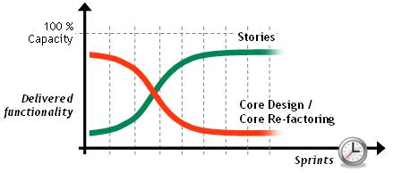 Att vara helt agil i Scrum kostar så det är enkelt att lockas till att flytta ut vissa kriterier från Definition of DONE for User Stories till Definition of DONE for Release. Dvs. vi skjuter viss testning, viss dokumentation, etc. till en ”release sprint”. Detta ökar vår Velocity (antalet features per sprint), men vi är å andra sidan inte leveransredo varje sprint eftersom vi har skjutit arbete och risk framför oss. Faktum är att release sprinten troligtvis inte alls blir en strikt timeboxad sprint eftersom vi inte vet hur mycket arbete och risk vi skjutit framför oss förrän vi sitter ner och planerar (och exekverar) den sprinten. Med detta upplägg kanske vi levererat 30 features när deadline kommer, men det troliga är att vi kämpar med testning, buggfixningar och refactoring av tekniska svagheter långt förbi deadline. Vad ännu värre är att vi har skapat en rejäl fördröjning i feedbacken mellan test och kodning då vissa tester inte körs förrän så mycket som fem sprintar senare.