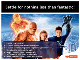 Vidare har jag en ambition att leda och driva teamet med de agila värderingarna som bas. Vad detta betyder konkret eller hur det realiseras har jag faktiskt ingen aning om i skrivande stund. Fast just det ser jag inte som något problem, snarare en möjlighet att praktisera ”Collective Ownership” och bjuda in hela teamet till att forma hur vi ska jobba tillsammans. Nu kommer ju teamet inte agera som ett tight Scrum team i ett och samma projekt, vi blir snarare en grupp individer som tillhör samma organisatoriska resultatenhet inom företaget. Med andra ord kommer inte alla agila principer vara betydelsefulla (eller meningsfull) i vårt kontext men som jag ser det måste man leva som man lär – förekommer ordet ”Agil” i teamets namn ska de agila värderingar också genomsyra hur teamet fungerar och arbetar!